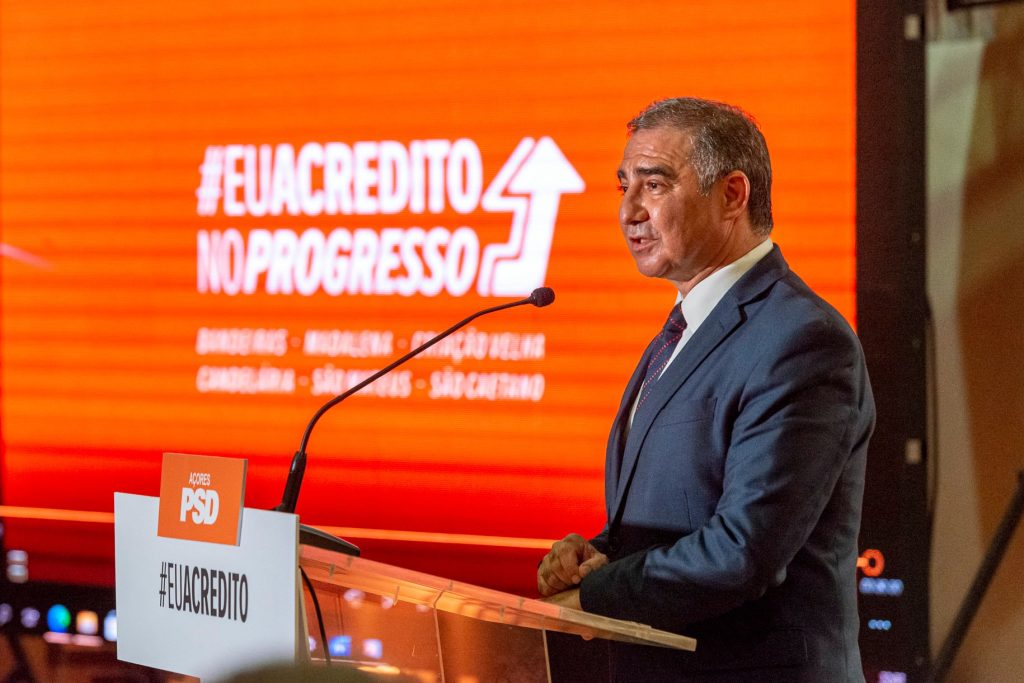 O Presidente do PSD/Açores, José Manuel Bolieiro, na apresentação da recandidatura de José António Soares à liderança da Câmara Municipal da Madalena onde enalteceu o crescimento do concelho nos últimos 8 anos.